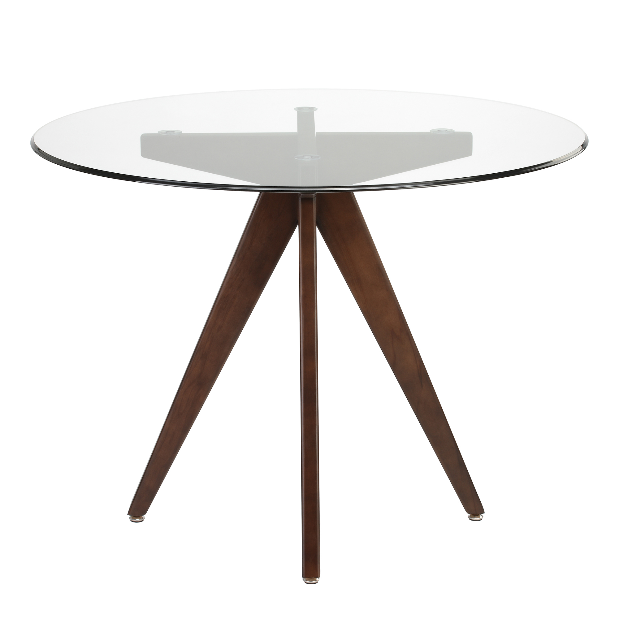 (length x width x height) iron base: Round glass top and black metal base dining table (seats 4) This table can accommodate up to four people comfortably, with standard dining height chairs. Tate 38 round dining table with glass top and walnut base options. Dining table modern kitchen and dining table with round glass top and stainless steel base.